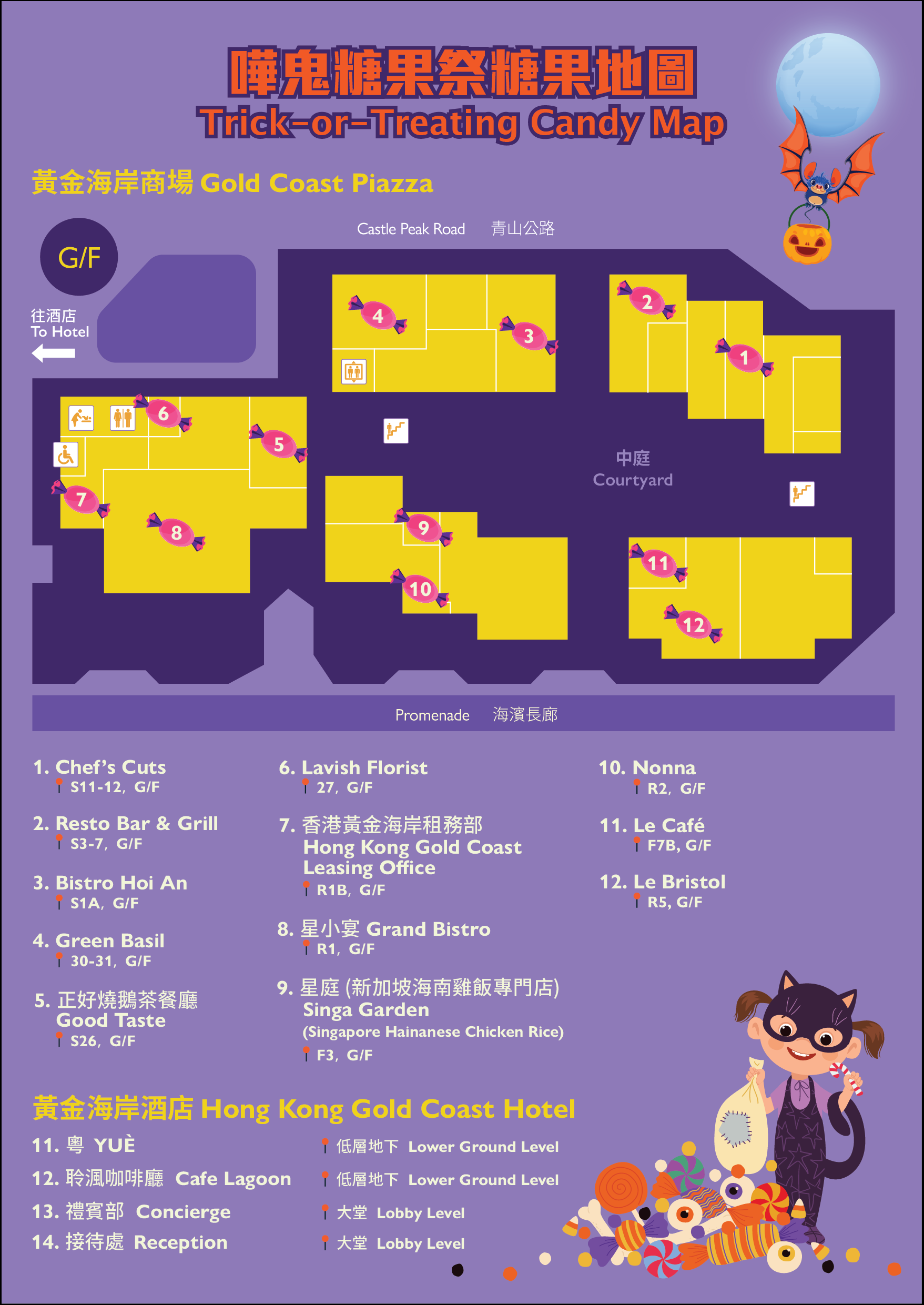 不給糖就搗蛋!跟著糖果地圖前往參與商戶說出「Trick or Treat!」,便可獲得免費糖果!